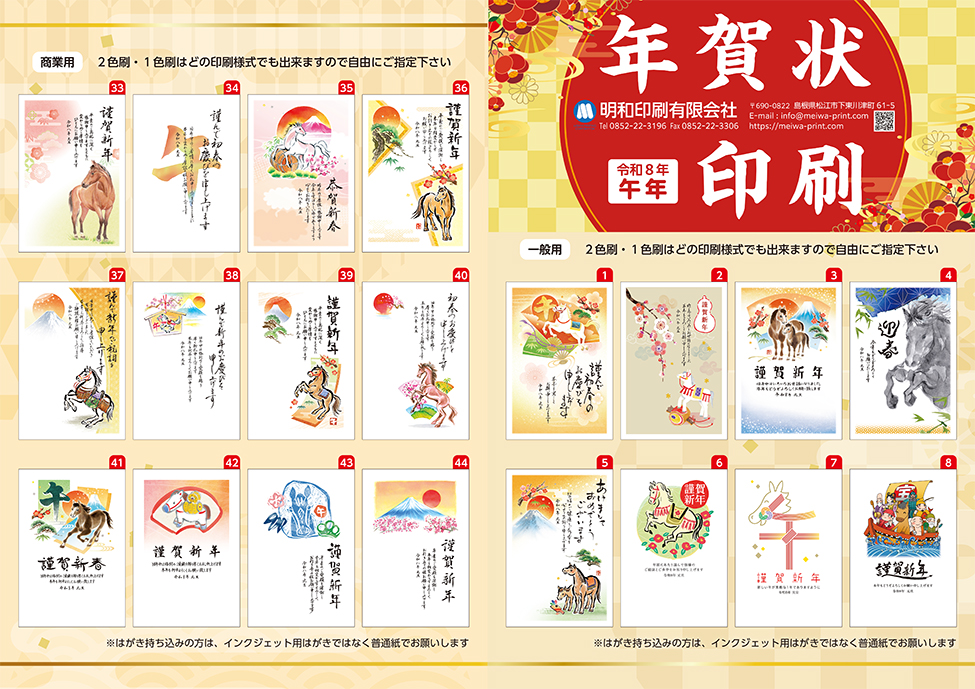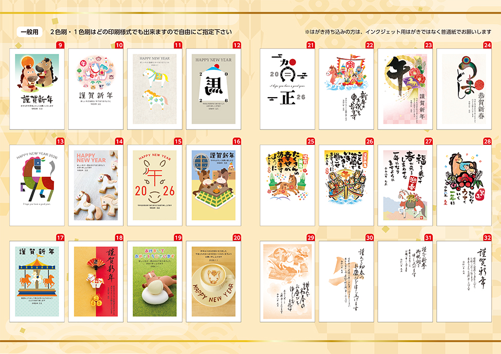 パンフレットに掲載されている年賀状だけでなく、写真やイラストを使用したオリジナルの年賀状の作成も承っております。